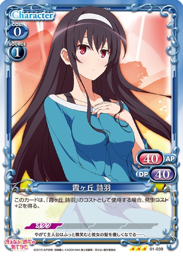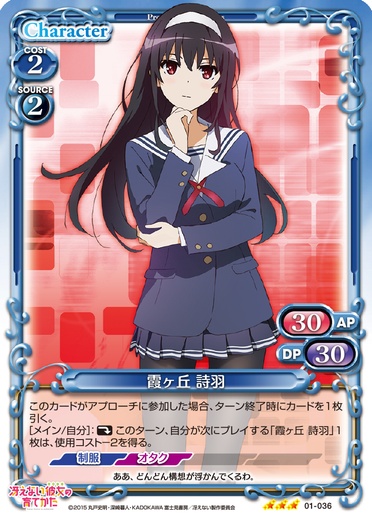 | このカードは、「霞ヶ丘 詩羽」のコストとして使用する場合、発生コスト+2を得る。 | ||