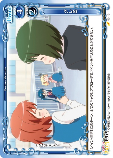 | [アプローチ/自分]:自分のキャラ1枚は、このターン、使用コストの値が3以上のキャラには妨害されない。 | ||