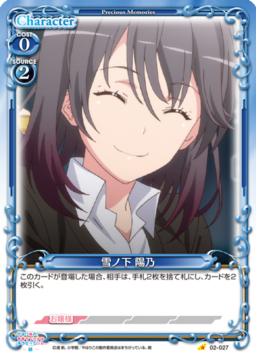 | このカードが登場した場合、相手のキャラ2枚は、ターン終了時まで-20/-20を得る。 | ||