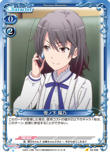 | このカードが登場した場合、使用コストの値が2以下のキャラ1枚は、このターン、妨害に参加することができない。 | ||
