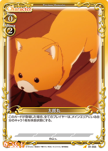 | このカードが登場した場合、全てのプレイヤーは、メインエリアにいる自分のキャラ1枚を休息状態にする。 | ||