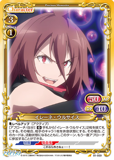 | 自分の「イレーネ・ウルサイス」のアプローチで相手のキャラが退場した場合、カードを1枚引く。 | ||
