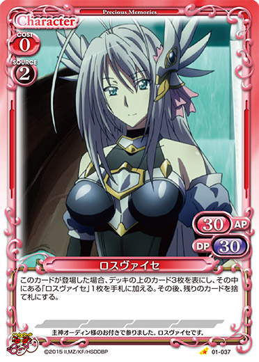 | このカードが登場した場合、デッキの上のカード3枚を表にし、その中にある「ロスヴァイセ」1枚を手札に加える。その後、残りのカードを捨て札にする。 | ||