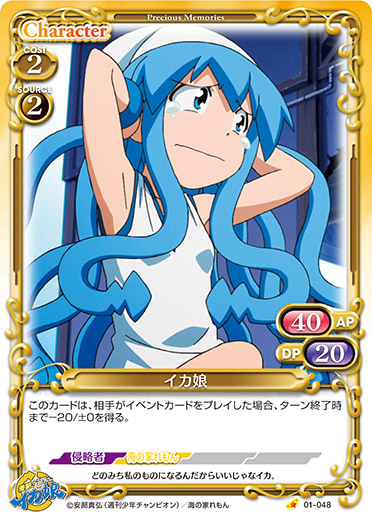 | このカードは、相手がイベントカードをプレイした場合、ターン終了時まで-20/±0を得る。 | ||