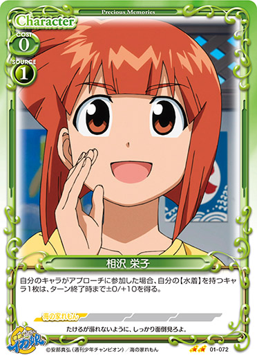 | 自分のキャラがアプローチに参加した場合、自分の【水着】を持つキャラ1枚は、ターン終了時まで±0/+10を得る。 | ||