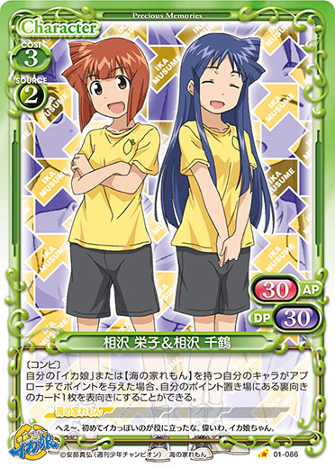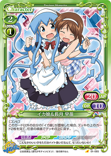 | [メイン/自分]:《休》:自分の「イカ娘」1枚は、ターン終了時まで+10/±0を得る。[メイン/自分]:《休》:自分の「イカ娘」1枚は、ターン終了時まで±0/+10を得る。 | ||
