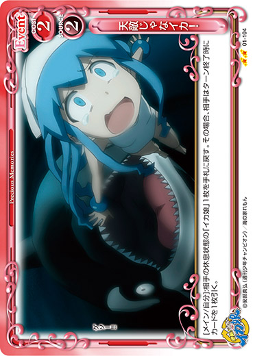 | [メイン/自分]:相手の休息状態の「イカ娘」1枚を手札に戻す。その場合、相手はターン終了時にカードを1枚引く。 | ||