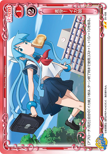 | [アプローチ/両方]:自分の「イカ娘」1枚は、ターン終了時まで使用コスト+1、+10/+10を得る。 | ||
