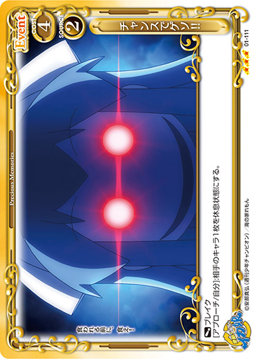| [アプローチ/自分]:相手のDPの値が0のキャラ1枚を手札に戻す。 | ||