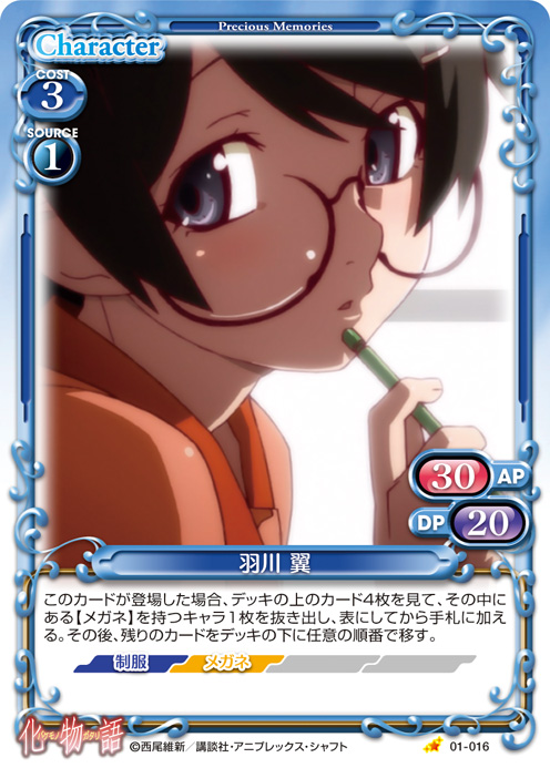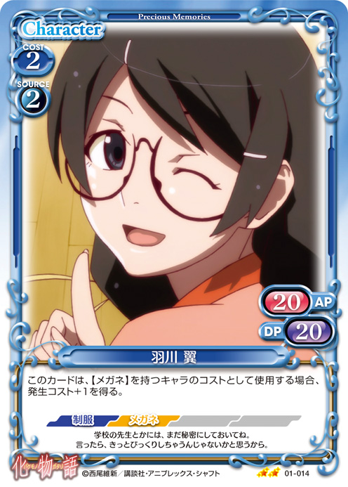 | このカードは、【メガネ】を持つキャラのコストとして使用する場合、発生コスト+1を得る。 | ||