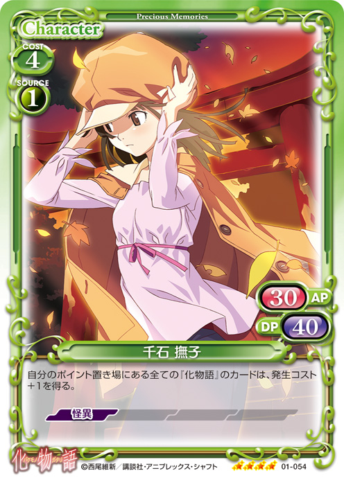 | 自分のポイント置き場にある全ての『化物語』のカードは、発生コスト+1を得る。 | ||
