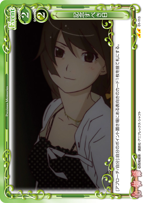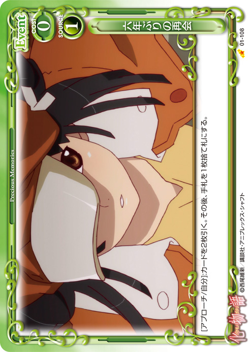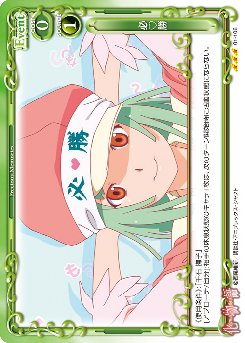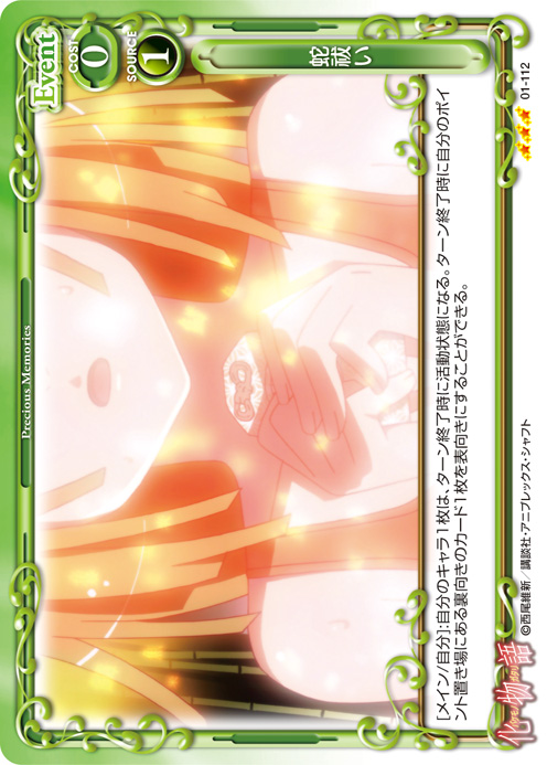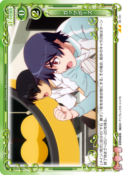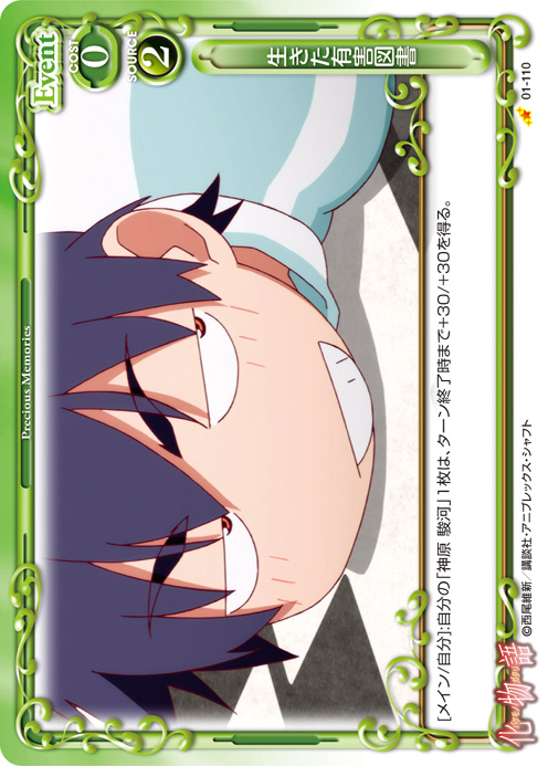 | [メイン/自分]:自分の「神原 駿河」1枚は、ターン終了時まで+30/+30を得る。 | ||
