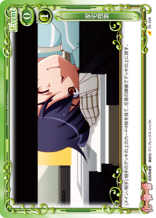 | [メイン/両方]:自分の「千石 撫子」1枚を休息状態にする。その場合、相手のキャラ2枚はターン終了時まで+20/-20を得る。 | ||