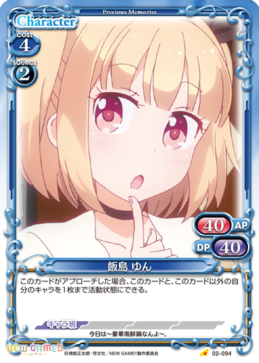 | このカードがアプローチした場合、このカードと、このカード以外の自分のキャラを1枚まで活動状態にできる。 | ||