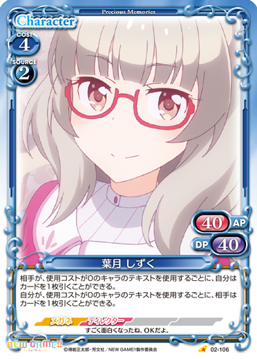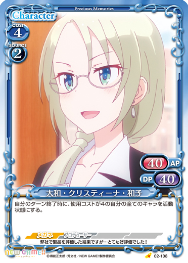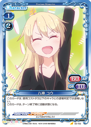 | 自分のターン終了時に、使用コストが4の自分の全てのキャラを活動状態にする。 | ||