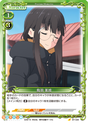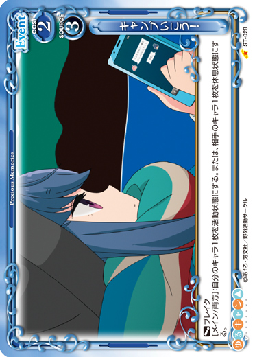 | 〔ブレイク〕[メイン/両方]:自分のキャラ1枚を活動状態にする。または、相手のキャラ1枚を休息状態にする。 | ||