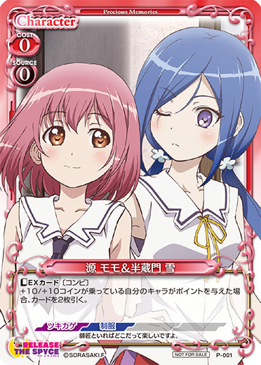 | 〔EXカード〕〔アクティブ〕このカードは、このカードより使用コストが低いキャラには妨害されない。このカードは、このカードの上に+10/+10コインが乗っている場合、自分の「半蔵門 雪」1枚につき使用コスト+1を得る。 | ||