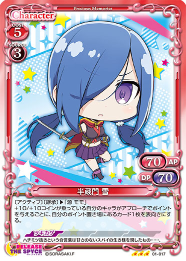 | 〔自由登場〕このカードが登場した場合、自分の「源 モモ」または「半蔵門 雪」1枚を活動状態にする。 | ||