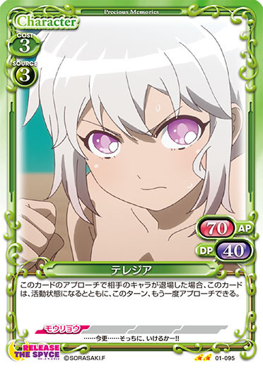 | このカードのアプローチで相手のキャラが退場した場合、このカードは、活動状態になるとともに、このターン、もう一度アプローチできる。 | ||