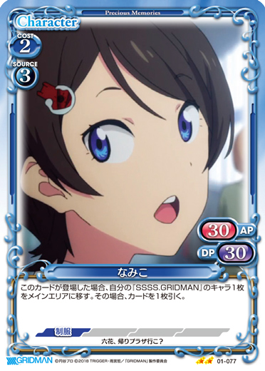 | このカードが登場した場合、自分の『SSSS.GRIDMAN』のキャラ1枚をメインエリアに移す。その場合、カードを1枚引く。 | ||