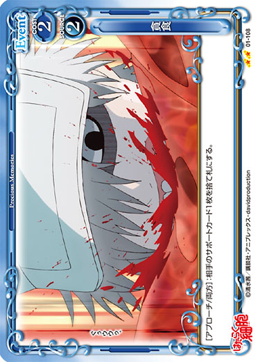| 〔EXカード〕〔アクティブ〕〔我慢〕このカードは、同じキャラの制限を受けない。このカードは、相手のターン終了時にEXデッキに戻る。 | ||