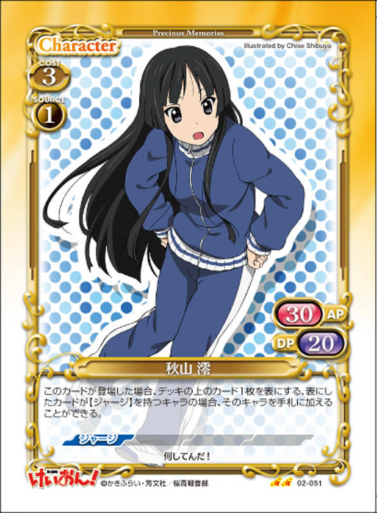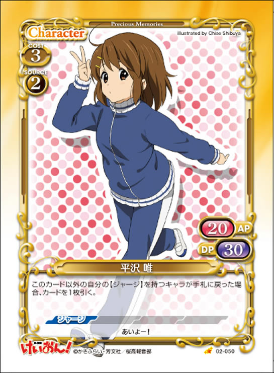 | このカード以外の自分の【ジャージ】を持つキャラが手札に戻った場合、カードを1枚引く。 | ||