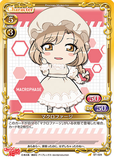 | このカードが自分の「マクロファージ」がいる状態で登場した場合、カードを2枚引く。 | ||