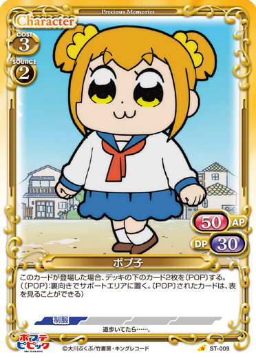 | このカードが登場した場合、デッキの下のカード2枚を〔POP〕する。(〔POP〕:裏向きでサポートエリアに置く。〔POP〕されたカードは、表を見ることができる) | ||