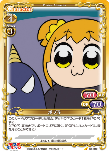 | このカードがアプローチした場合、デッキの下のカード1枚を〔POP〕する。(〔POP〕:裏向きでサポートエリアに置く。〔POP〕されたカードは、表を見ることができる) | ||