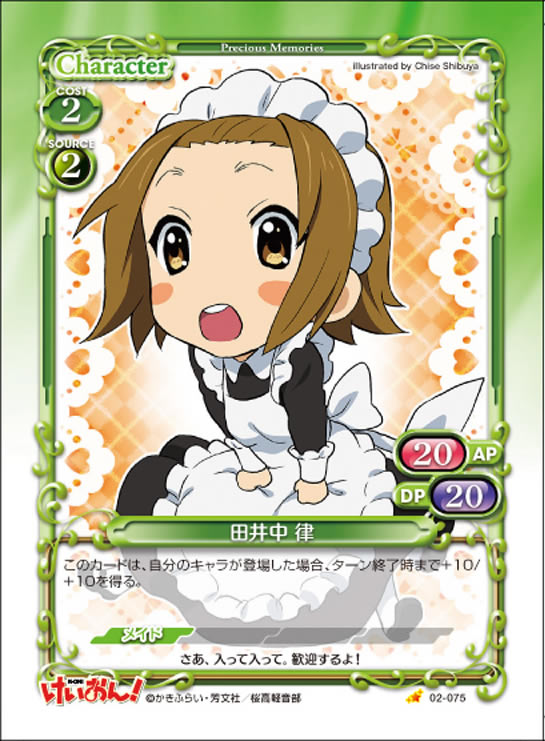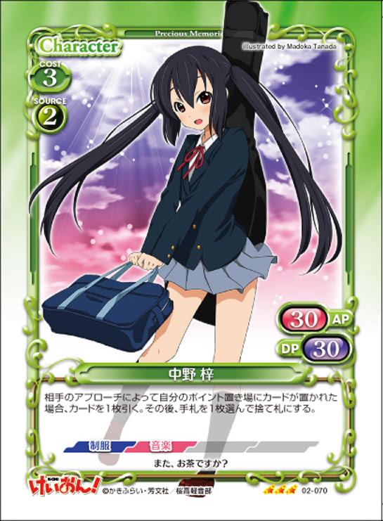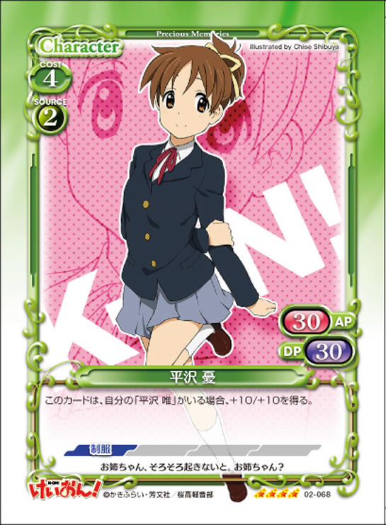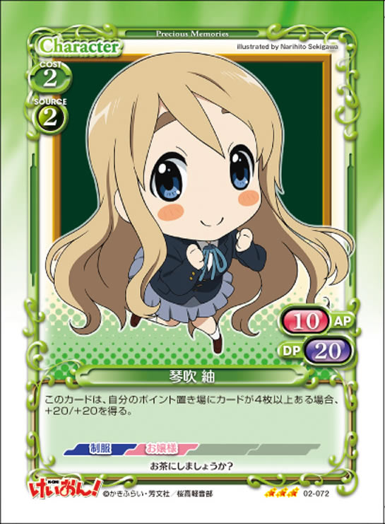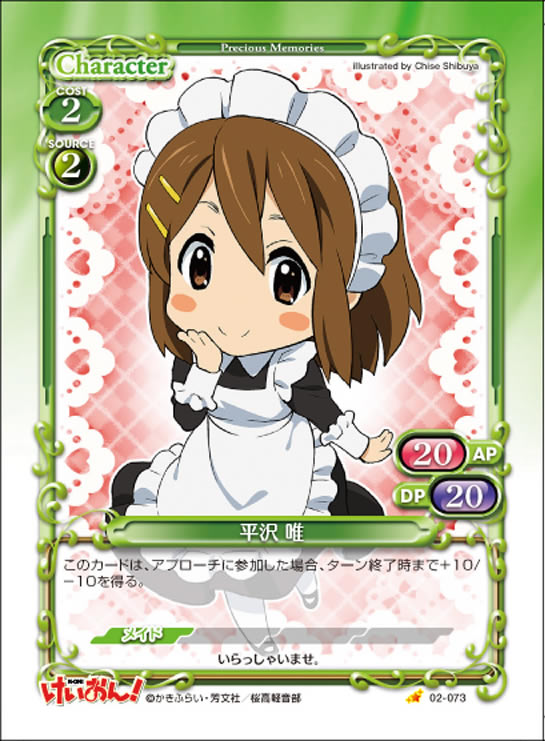 | このカードは、自分の「平沢 唯」がいる場合、+10/+10を得る。 | ||