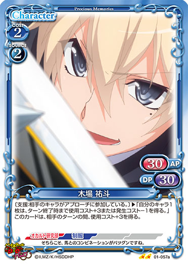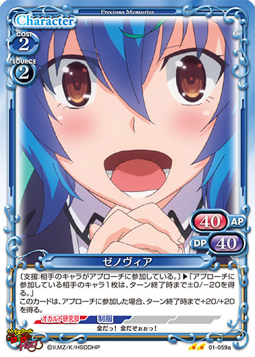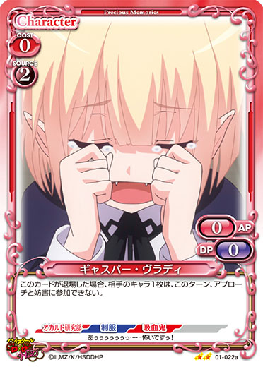 | このカードが退場した場合、相手のキャラ1枚は、このターン、アプローチと妨害に参加できない。 | ||