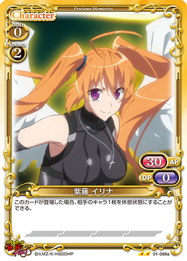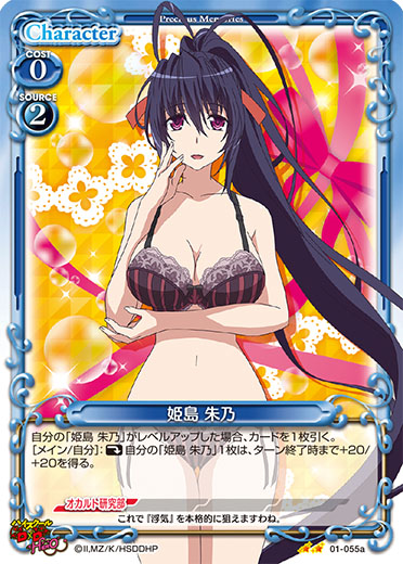 | 自分の「姫島 朱乃」がレベルアップした場合、カードを1枚引く。[メイン/自分]:《休》自分の「姫島 朱乃」1枚は、ターン終了時まで+20/+20を得る。 | ||
