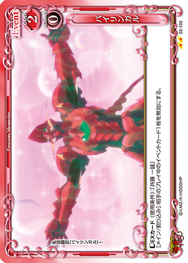 | 〔EXカード〕《使用条件》:「兵藤 一誠」[メイン/割り込み]:相手のプレイ中のイベントカード1枚を無効にする。 | ||