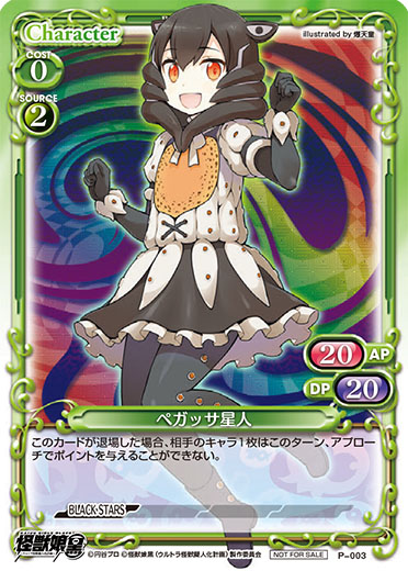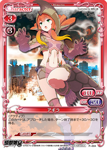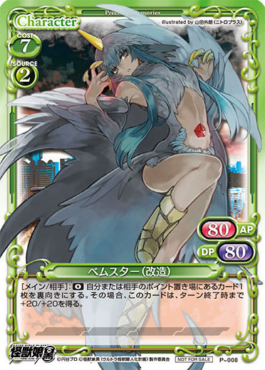 | [メイン/相手]:《0》自分または相手のポイント置き場にあるカード1枚を裏向きにする。その場合、このカードは、ターン終了時まで+20/+20を得る。 | ||