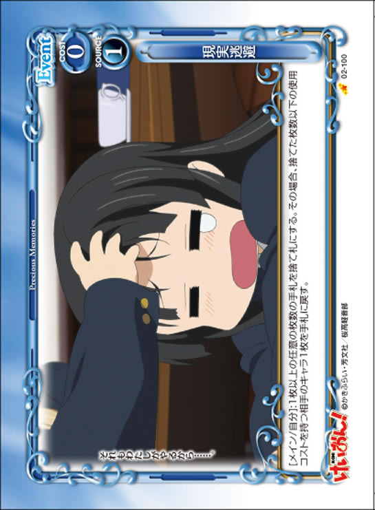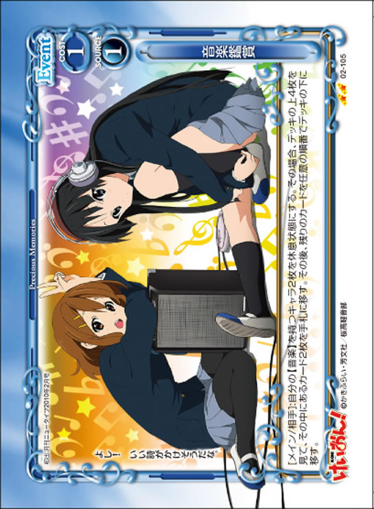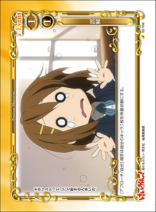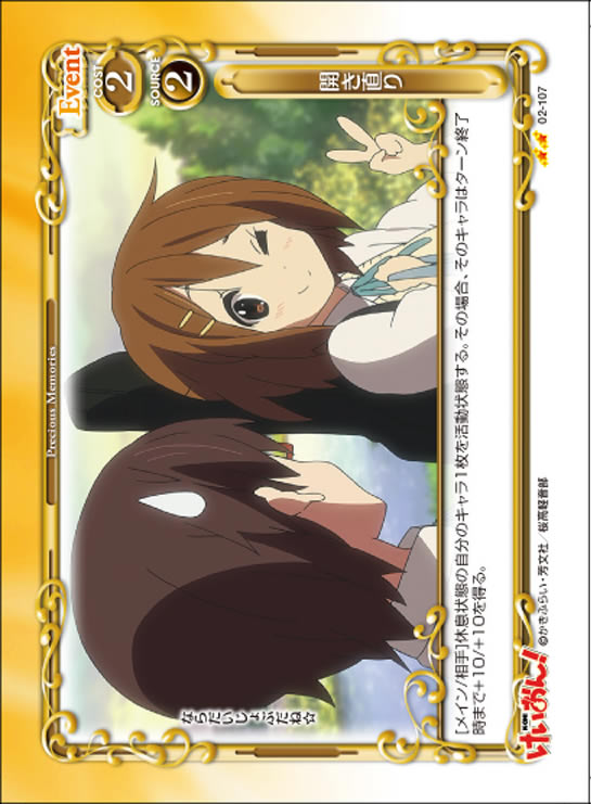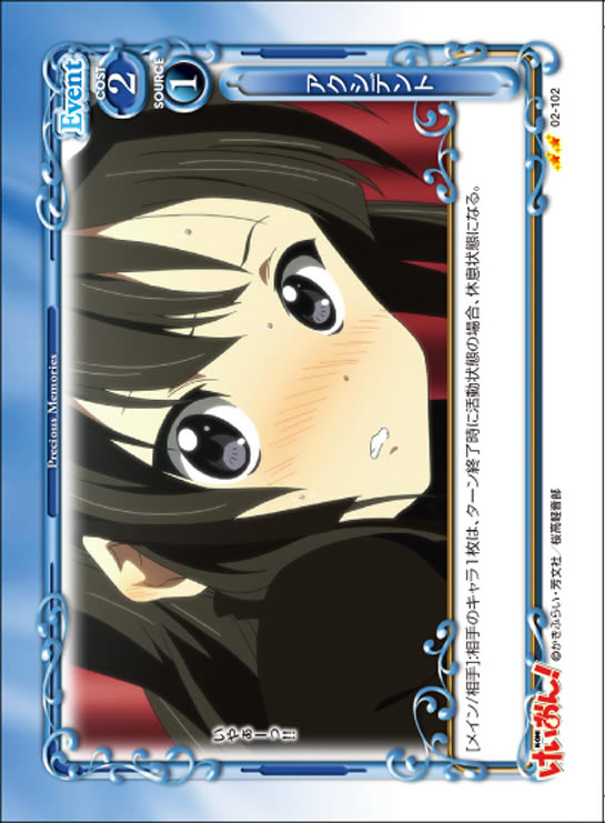 | [アプローチ/両方]:自分の「山中 さわ子」1枚は、ターン終了時まで+20/+20を得る。ターン終了時に相手はカードを2枚引く。 | ||