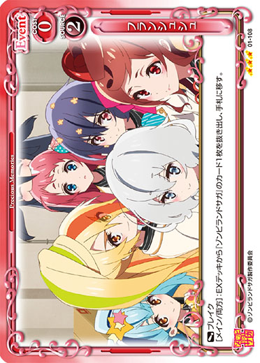 | 〔ブレイク〕[メイン/両方]:EXデッキから『ゾンビランドサガ』のカード1枚を抜き出し、手札に移す。 | ||