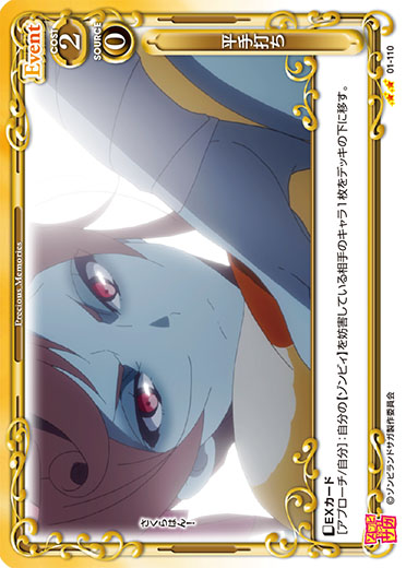 | 〔EXカード〕[アプローチ/自分]:自分の【ゾンビィ】を妨害している相手のキャラ1枚をデッキの下に移す。 | ||