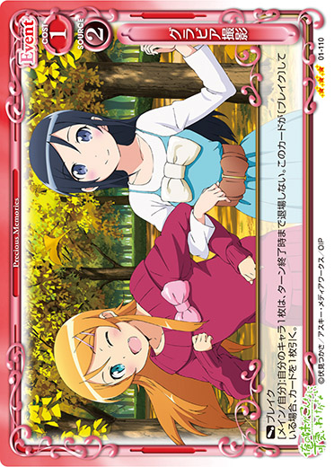 | [アプローチ/両方]:自分の「新垣 あやせ」1枚のAP/DPの値を、ターン終了時まで50/50に変更する。 | ||