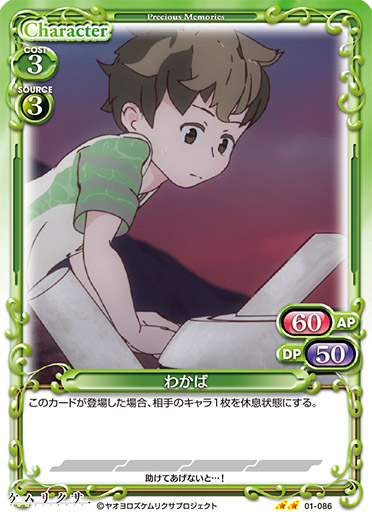 | このカードが登場した場合、相手のキャラ1枚を休息状態にする。 | ||