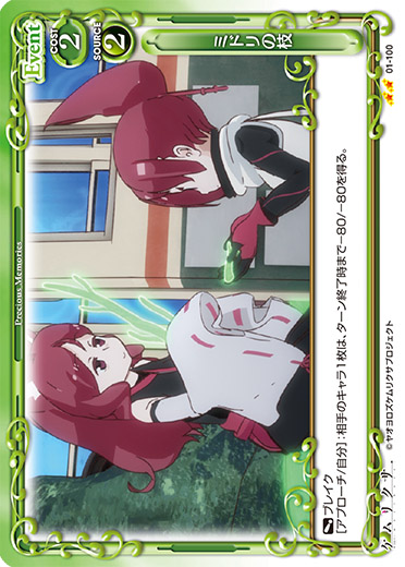 | 〔ブレイク〕[アプローチ/自分]:相手のキャラ1枚は、ターン終了時まで-80/-80を得る。 | ||
