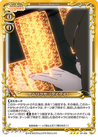 | 〔ブレイク〕[メイン/両方]:EXデッキから『ケムリクサ』のカード1枚を抜き出し、手札に移す。 | ||