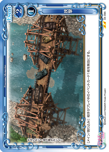 | 《使用条件》:「Mk.IV戦車」[アプローチ/自分]:自分の「お銀」を妨害している相手のキャラ1枚を捨て札にする。 | ||