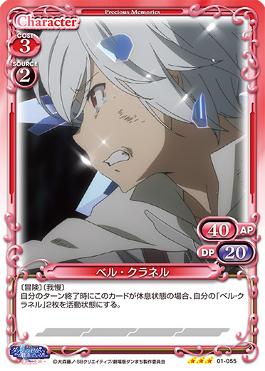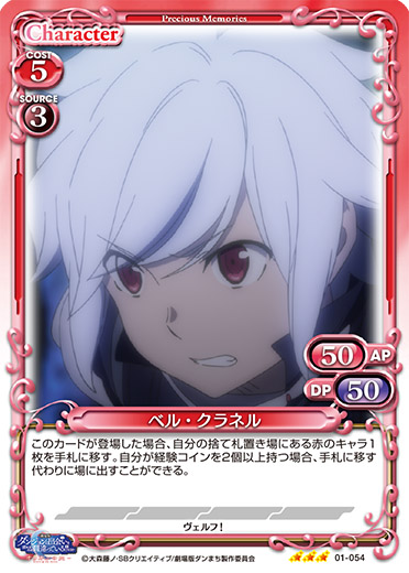 | 〔冒険〕〔我慢〕自分のターン終了時にこのカードが休息状態の場合、自分の「ベル・クラネル」2枚を活動状態にする。 | ||
