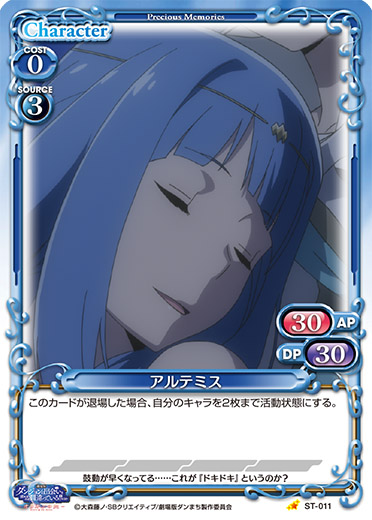 | このカードが退場した場合、自分のキャラを2枚まで活動状態にする。 | ||