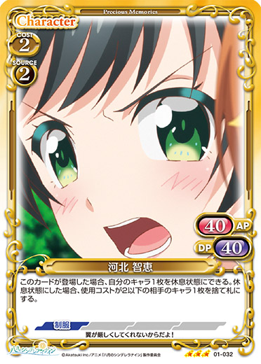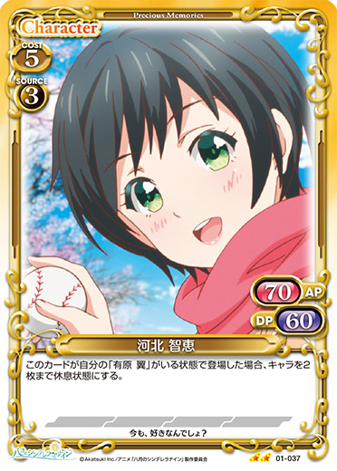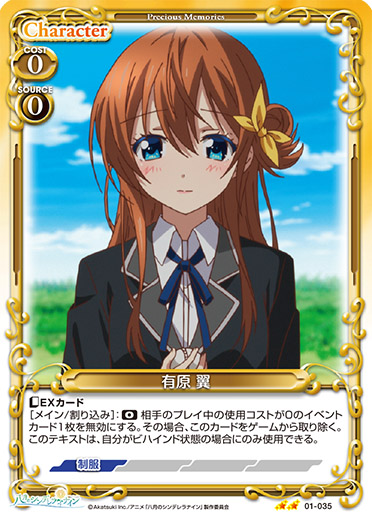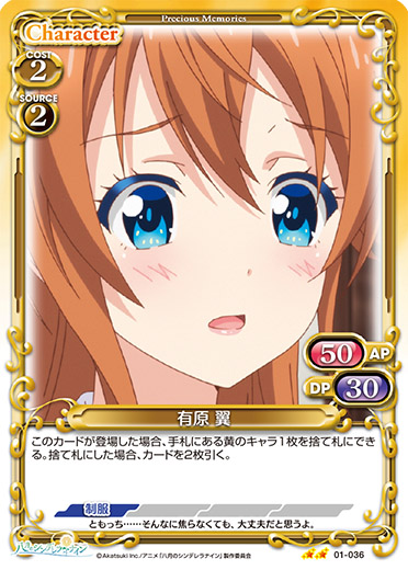 | このカードが自分の「有原 翼」がいる状態で登場した場合、キャラを2枚まで休息状態にする。 | ||