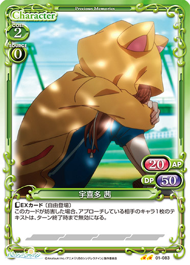 | 〔EXカード〕〔自由登場〕このカードがアプローチまたは妨害した場合、自分のキャラ1枚を活動状態にする。 | ||