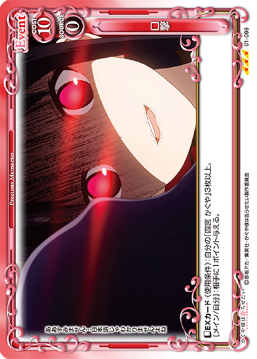 | 〔EXカード〕《使用条件》:自分の「四宮 かぐや」3枚以上。[メイン/自分]:相手に1ポイント与える。 | ||