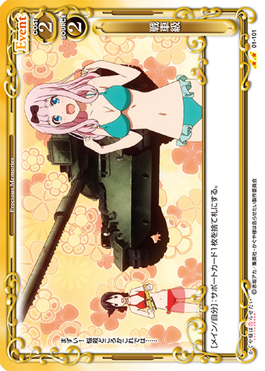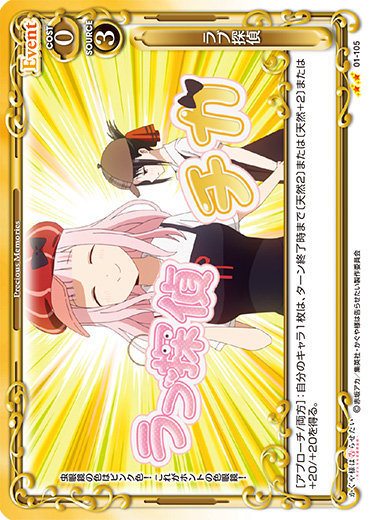 | [アプローチ/両方]:自分のキャラ1枚は、ターン終了時まで〔天然2〕または〔天然+2〕または+20/+20を得る。 | ||