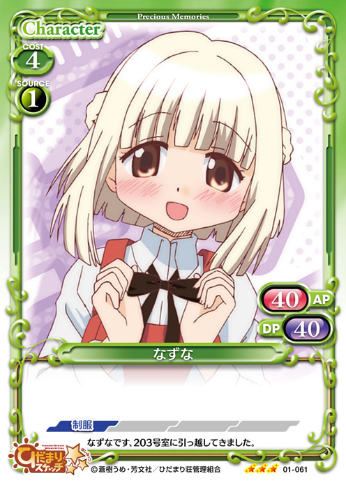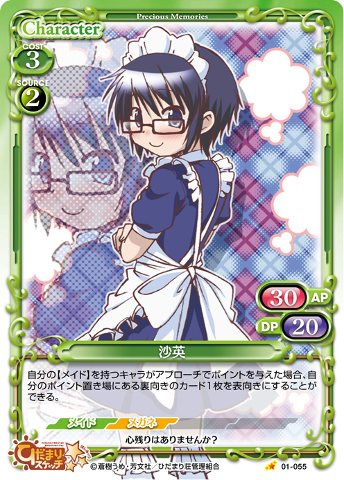 | 自分の【メイド】を持つキャラがアプローチでポイントを与えた場合、自分のポイント置き場にある裏向きのカード1枚を表向きにすることができる。 | ||