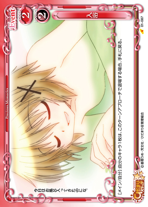 | [メイン/自分]:自分のキャラ1枚は、このターンアプローチで退場する場合、手札に戻る。 | ||